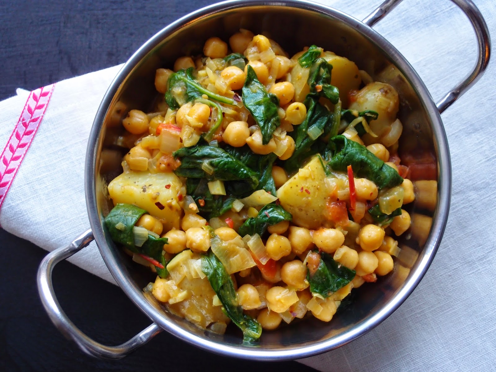 Today I made this chickpea, spinach and potato curry as planned as the Wednesday meal for this week. It was quick to make, as my partner had recently made a brilliant garam masala spice mix. Therefore I could luckily fully skip the spice mixing phase, which is fun, but also takes time and now I just wanted an easy weekday curry. Here is my chickpea, spinach and potato curry recipe.