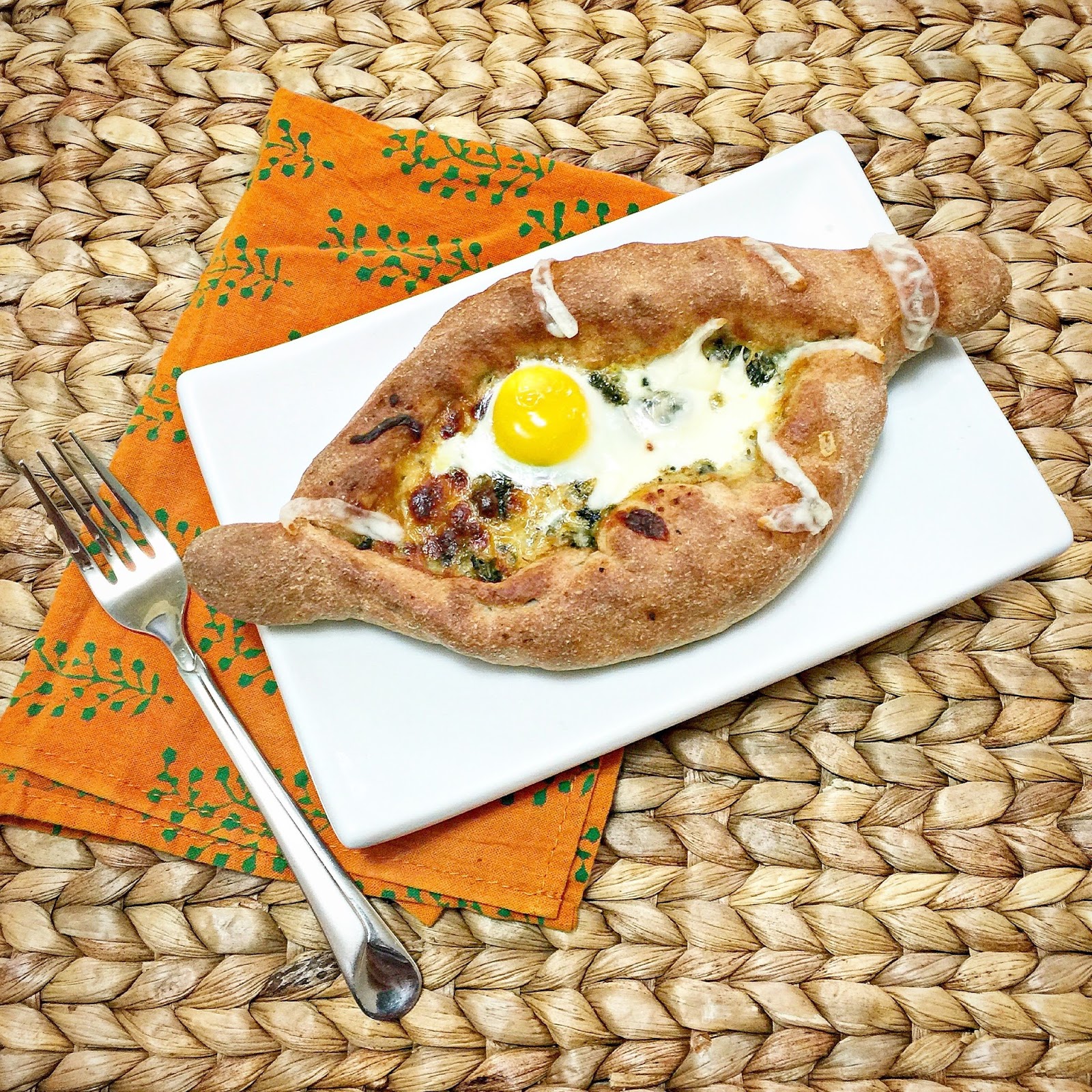 from Cooking for Kishore blog shared her interesting post Spinach Chili Khachapuri (Georgian Egg Boats) with
